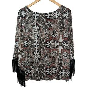 Boho Festival Fringe Blouse Womens Plus Size 1X I.N. Studio Elastic Hem Casual