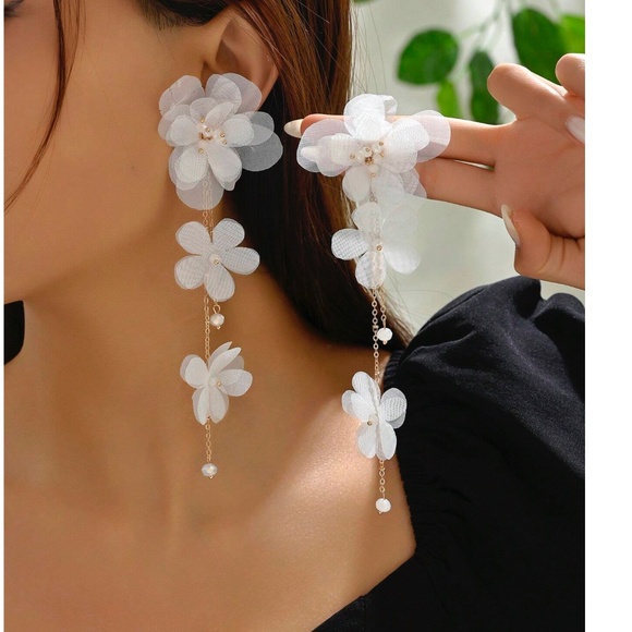 Boho Floral Applique Gold Tone Faux Pearl Dangle Earrings