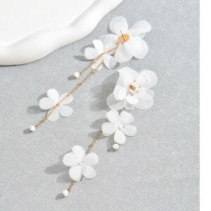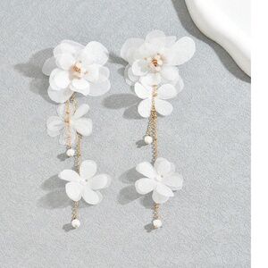 Boho Floral Applique Gold Tone Faux Pearl Dangle Earrings