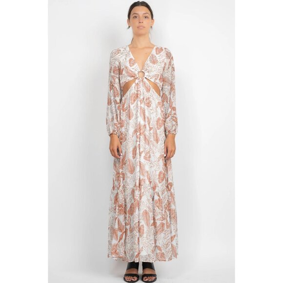 Boho Floral Cutout Maxi Dress With Long Sleeves & Ring Detail By BTFL-Life