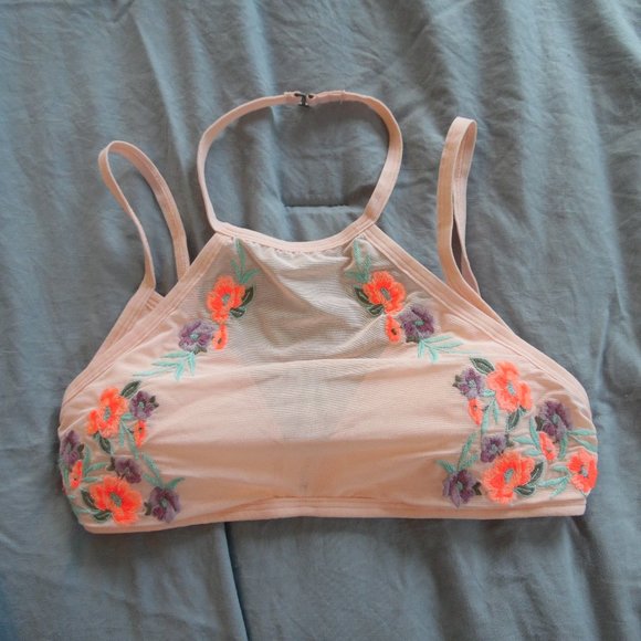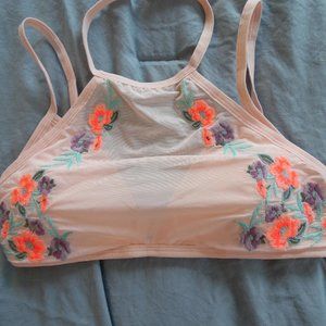 🍍 Boho Floral Embroidered High-Neck Bralette, XS
