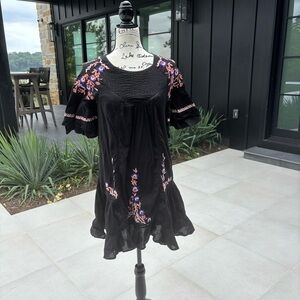 🌸 Boho Floral Embroidered Tunic Dress – XS 🌸