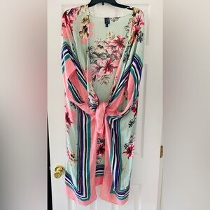 Express one size kimono cover up cape tropical pool side mint and pink