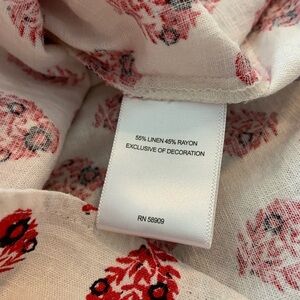 Womens X-Small Boho Floral Pleated Eyelets Linen Blend Tie Sleeves Blouse