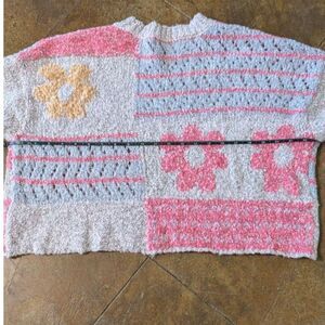 Boho Floral Knit Oversized Cropped Sweater Retro Pastels (Moon & Madison XS)
