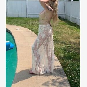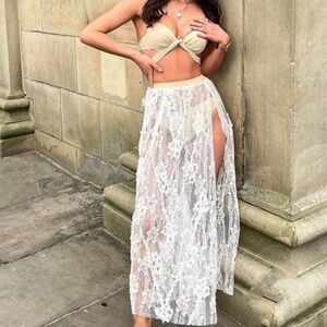 Boho Floral Lace Twist Bikini Skirt Cover up Beach Set