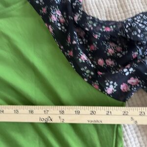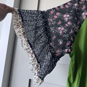 Boho Floral Leopard Floral Top Women Large Green Black Ruffle Bell Sleeve Tiered