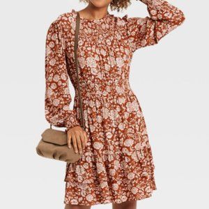 Women's Long Bishop Sleeve Smocked Dress - Knox Rose™ Rust Floral XS