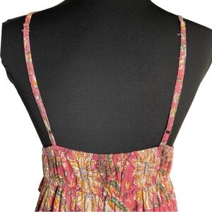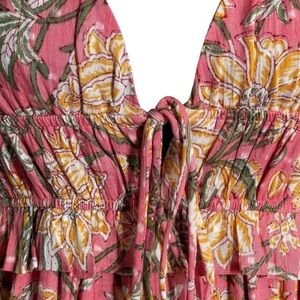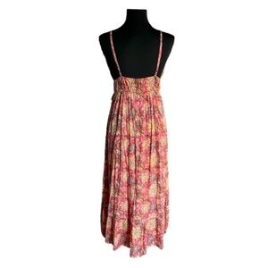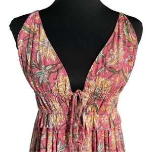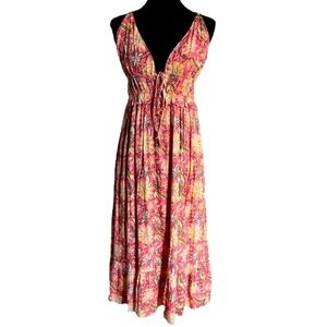 Boho Floral Maxi Dress Pink Metallic Tie Front Resort Festival Size Small