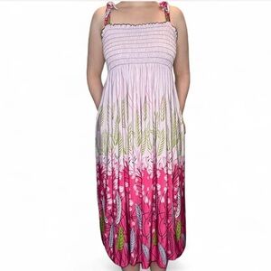Boho Floral Maxi sundress with a smocked bodice and tie straps size medium large