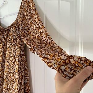Boho Floral Milkmaid Flowy Mini Dress Size Small Long Sleeve