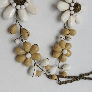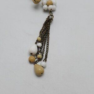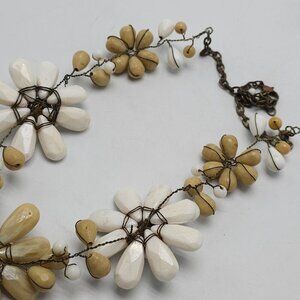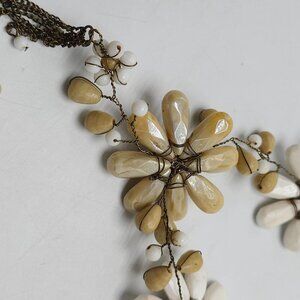 Boho Floral Necklace With Beige White Polished Stones Chain Tassel Artisan