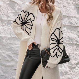 Boho Floral Pattern Drop Shoulder Duster Cardigan