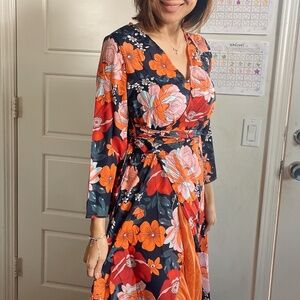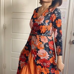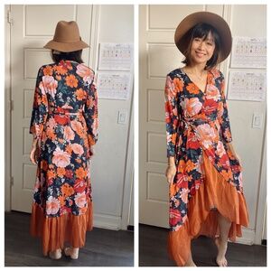Boho Floral Print Asymmetrical Ruffle Hem Belted Maxi Dress