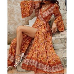 Resort summer wedding guest festival date night cruise Bohemian vintage flirty hippie bohemian chic trendy maxi coverup beach tropical vacation coachella dress vintage skirt floral maxi midi ethereal Aurora Frill