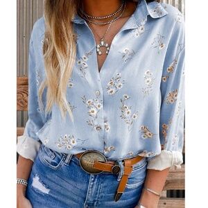 Boho Floral Print Button Down Boyfriend Shirt