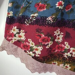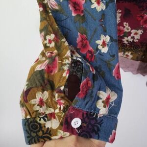 Boho Floral Print Cotton Blouse 12 Maroon Olive Blue