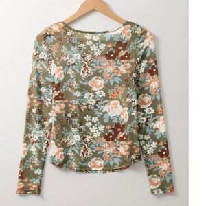 Boho Floral Print Crew Neck Long Sleeve Blouse