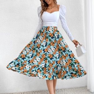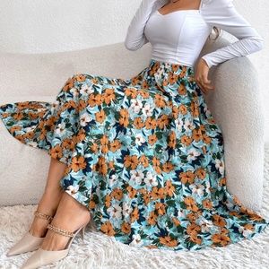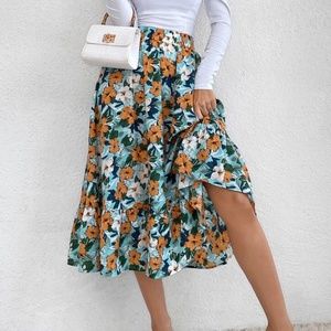 Boho Floral Print Flowy High waist Skirt