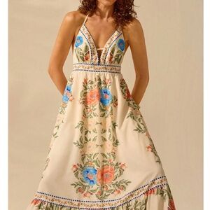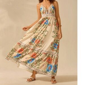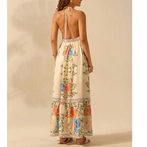 Boho Floral Print Halter Neck Ruffle Hem Maxi Dress