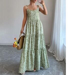 Boho Floral Print High Waisted Ruffle Hem Cami Maxi Dress