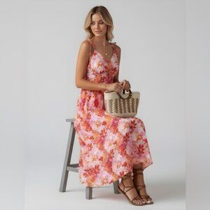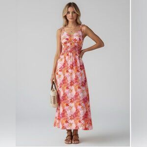 Boho Floral Print Knot Shoulder Shirred Cami Dress