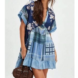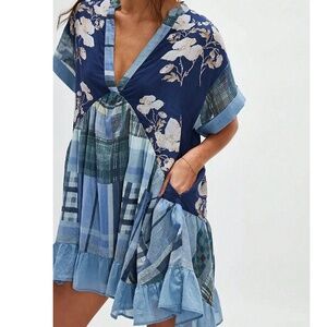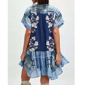 Boho Floral Print Ruffle Hem V neck Short Sleeve Dress