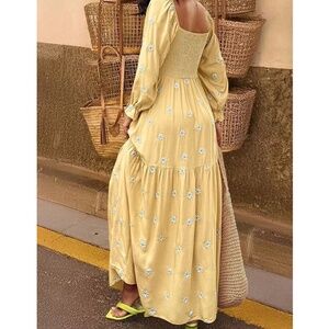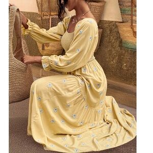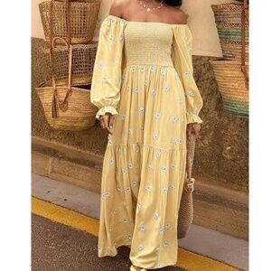 Boho Floral Print Smocked Off Shoulder Long sleeve Maxi Dress
