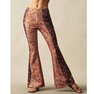 Boho Floral Print Stretchy Waist Color Block Bell Bottom Pants