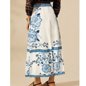 Boho Floral Print Stretchy Waist Pockets Midi Skirt