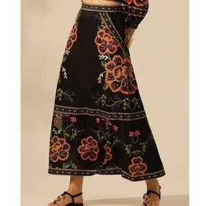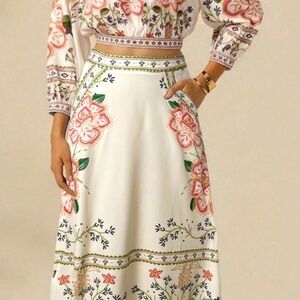 Boho Floral Print Stretchy Waist Pockets Midi Skirt