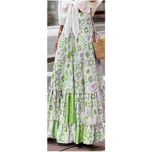 Boho Floral Print Stretchy Waist Ruffle Hem Maxi Skirt