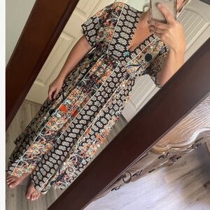 Boho Floral Print V neck Short Sleeve Flared hem Maxi Dress