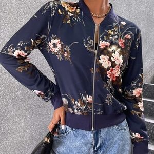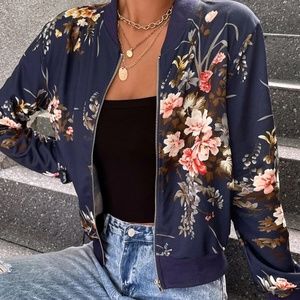 Boho Floral Print Zipper Light Bomber jacket