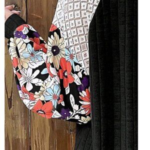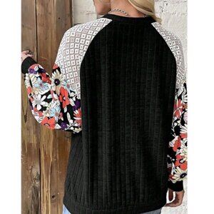 Boho Floral Print lace panel Brushed Fabric Long Sleeve Top