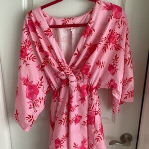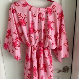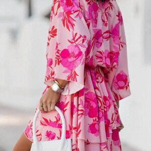 Boho Floral Ruffle Pink Mini Dress (SM)