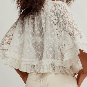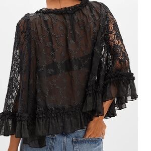 Boho Floral Semi Sheer Loose Fit Ruffle Hem Blouse