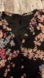 This women’s shirt in size medium features a floral print on a black background. The contrast highlights the flowers. It has long sleeves with gathered cuffs and a V-neckline. Made from a lightweight and flowy fabric, this shirt offers comfort and ease of movement. The floral pattern is in shades of pink, blue, and cream.