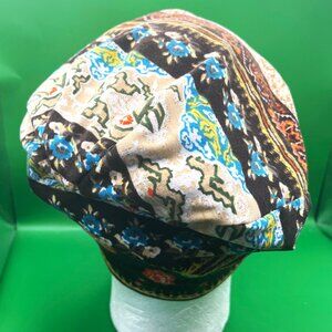 Essential Keywords for Search: Slouchy Beanie, Chemo Cap, Turban, Boho, Bohemian, Floral Print, Patchwork, Hippie, Women's Hat, Knit, Skull Cap.