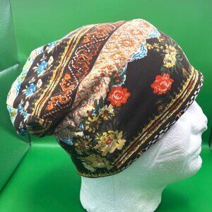 Boho Floral Slouchy Beanie Chemo Hat Turban Cap Patchwork Print Hippie Knit