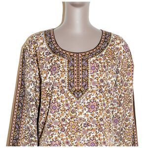 Boho Floral Sparkle Long Sleeve Short Dress Casual Womens Size Large