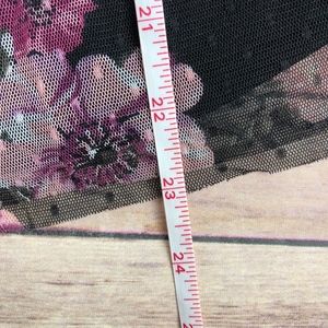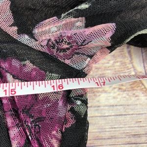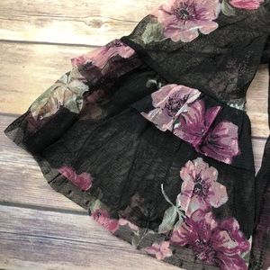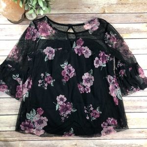 Features Layered Bell Sleeve, mesh upper and arms (bodice has 2nd solid layer), keyhole back.