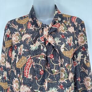 Boho Floral Top Small Tie Neck Cottagecore Fall Retro Feminine Y2K Romantic