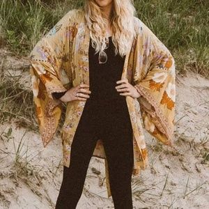 Boho Floral Tropical Print Belted Kimono Cover up