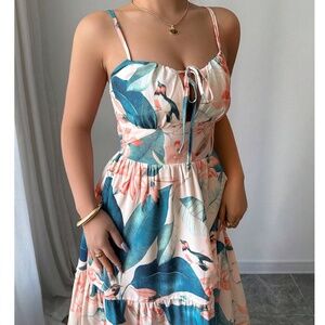Boho Floral Tropical Print Front Tie Cami maxi Dress