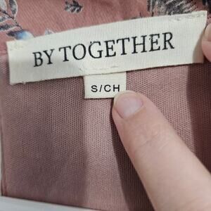 Boho Floral V-Neck/Choker Neck Womens Pink Babydoll Flowy Top Bell Sleeve Size S