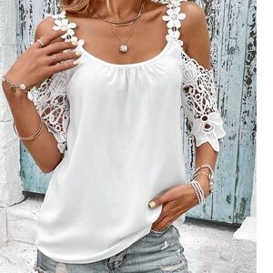 Boho Floral lace Cold Shoulder Loose Fit Top