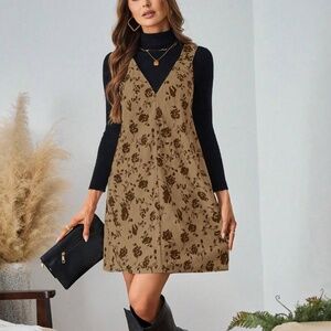 Boho Floral print Corduroy Sleeveless Mini Dress