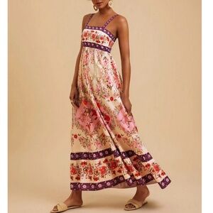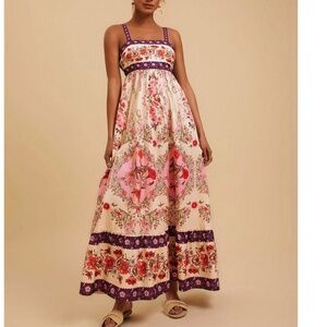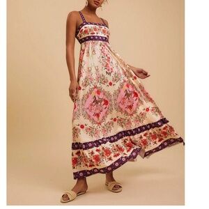 Boho Floral print High Waisted Ruffle Hem Cami Maxi Dress