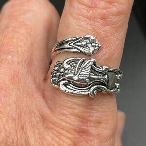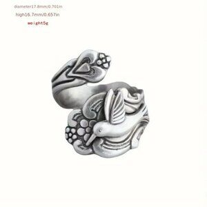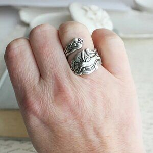 Boho Flower and Hummingbird Adjustable Spoon Ring #1357